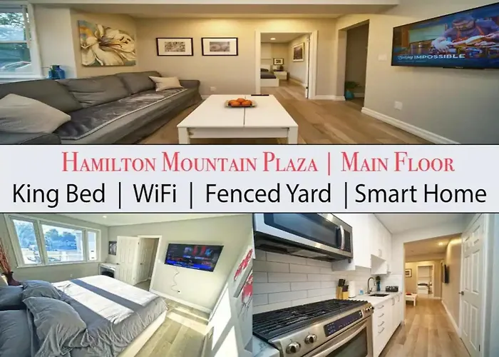 The spacious 79 m^2 Hamilton Mountain Plaza - King Bed - Main Floor Apartment offers views of the garden and a location 4.4 km from Dundurn Castle.